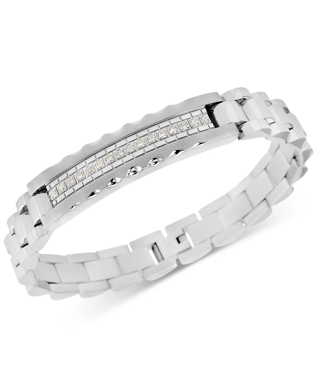 Sutton Stainless Steel And Braided Leather Bracelet With Cubic Zirconia Stations