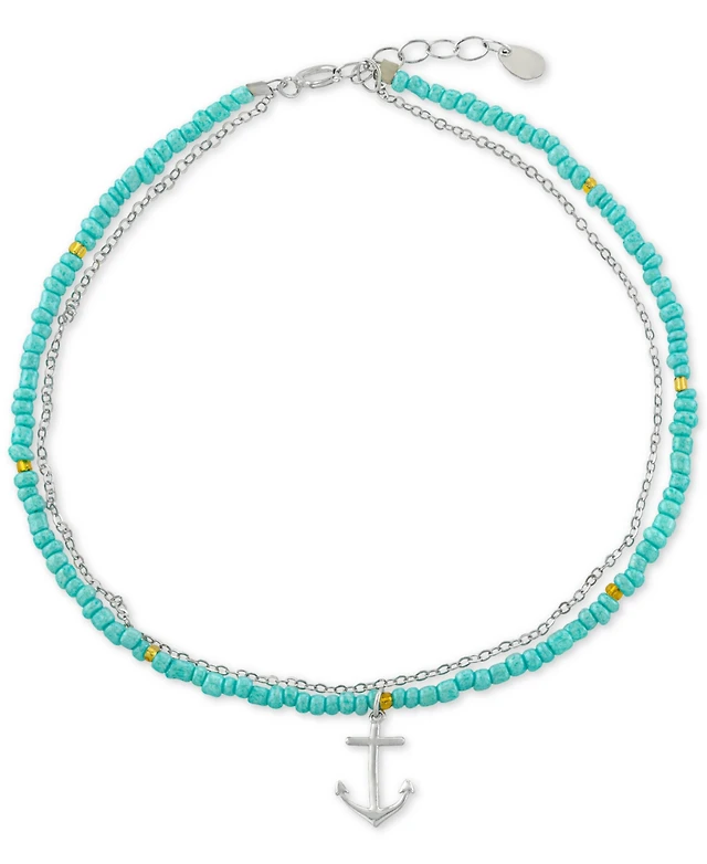 Lucky Brand Mens Black Leather Anchor Wrap Bracelet with Adjustable Fit