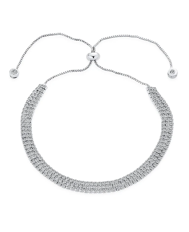 Bling Jewelry Triple Row Thin 3 Strand Cubic Zirconia Cz Slide Bolo Style Tennis Bracelet Prom Adjustable