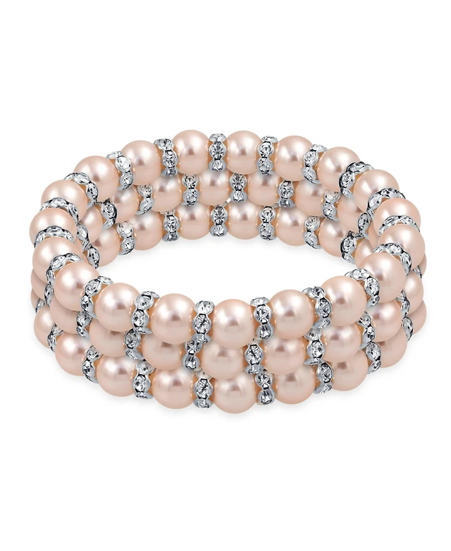 Bling Jewelry Antique Art Deco Style Wide Statement Four Multi Strand White Freshwater Cultured Pearl Bracelet Silver Plated Brass 7.5"