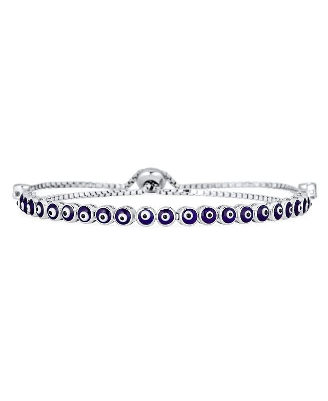 Cubic Zirconia Evil Eye Adjustable Bolo Bracelet in Fine Silver Plate
