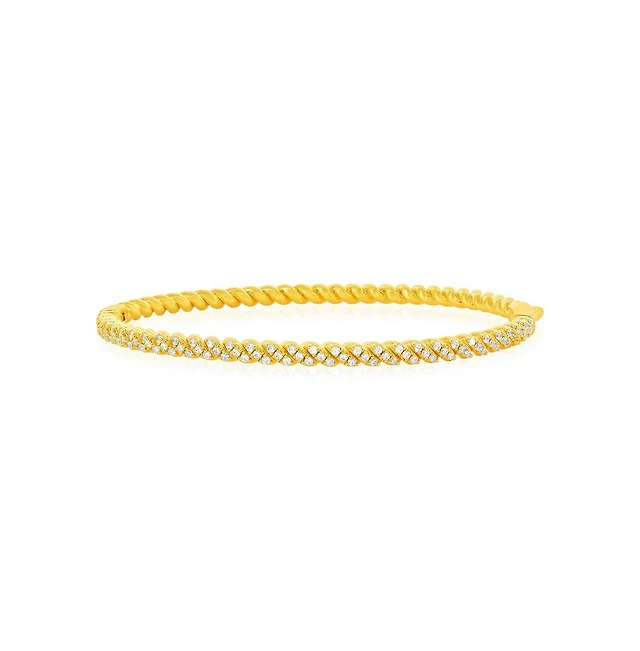Simona Sterling Silver, Sideways Cross & Cz Bracelet - Gold Plated