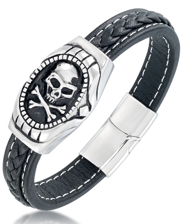 Metallo Stainless Steel Genuine Bead Leather Bracelet