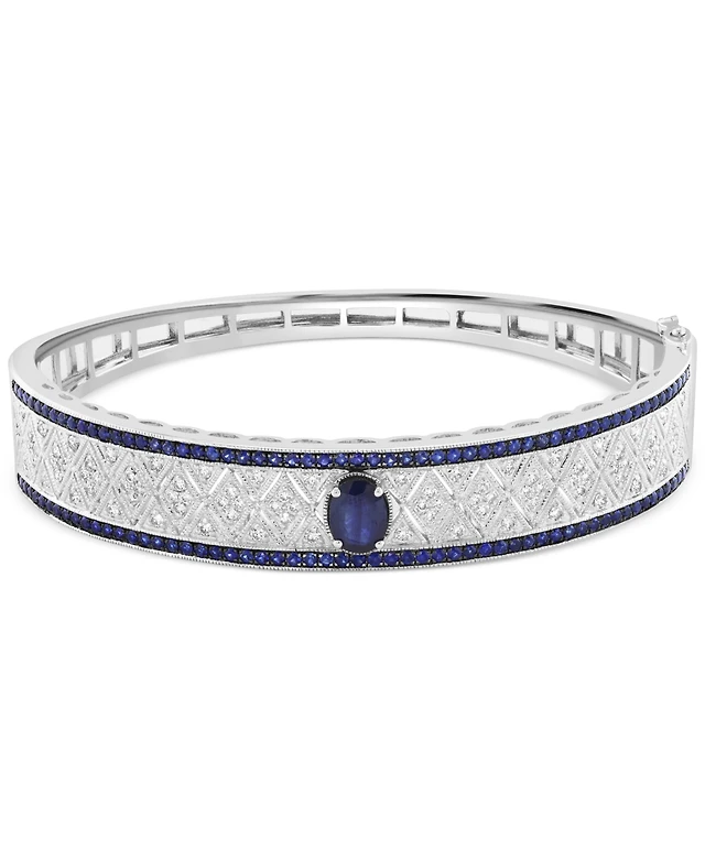Sapphire (2-3/4 ct. t.w.) and Diamond (1/10 ct. t.w.) Cuff Bangle Bracelet in Sterling Silver
