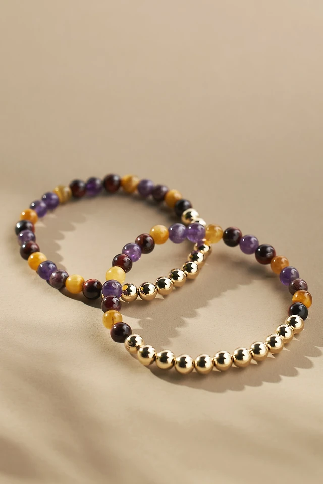 Unwritten Multi Sunburst Quartz Blessed Stone and Beaded Stretch Bracelet Set