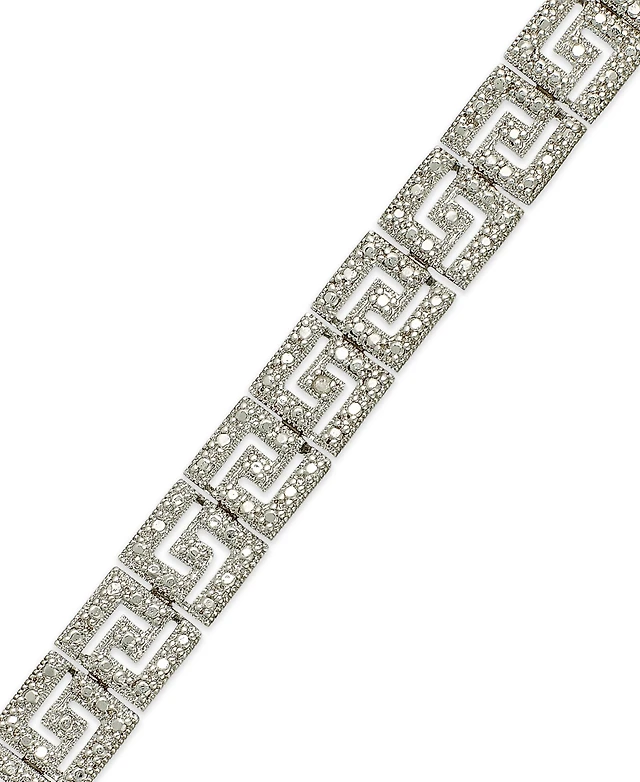 Diamond Accent Heart X Link Bracelet Silver Plate
