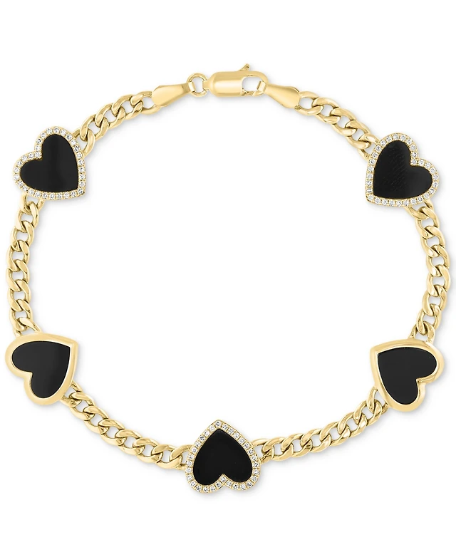 Effy Onyx (9 x 8-1/2 mm) & Diamond (1/4 ct. t.w.) Heart Flex Bracelet in 14k Gold Over Silver
