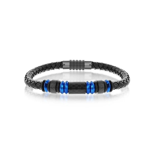 Lucky Brand Stainless Steel Triple Row Black Cord Bracelet - 8.25"