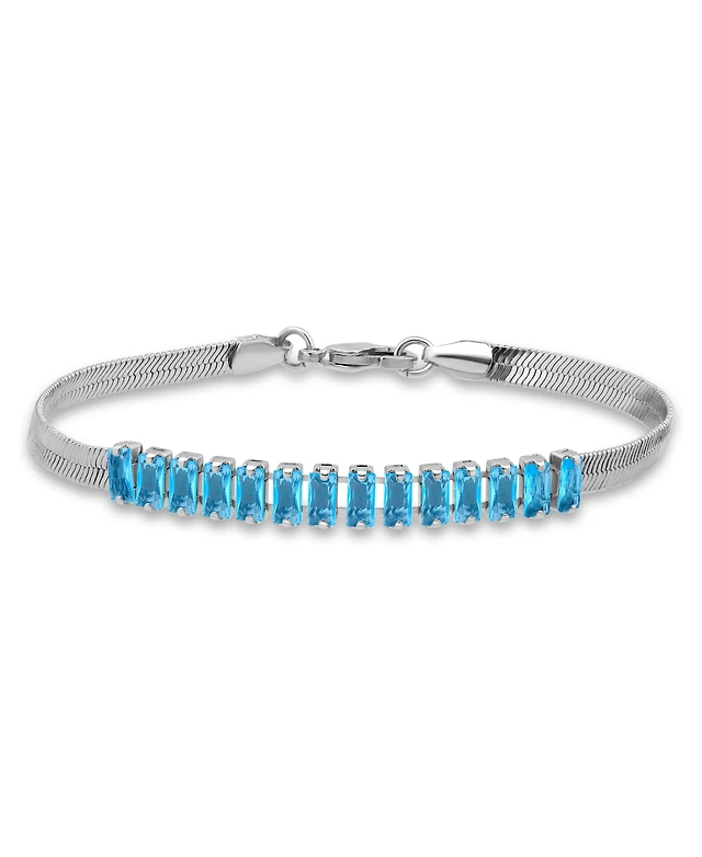 Birthstone bracelet, Square cut, March, Blue, Rhodium plated by SWAROVSKI