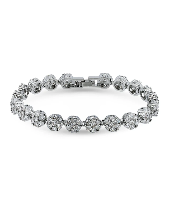 Rachel Glauber White Gold Plated with Clear Cubic Zirconia Three Row Bracelet