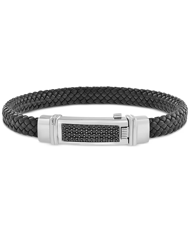 Legacy for Men by Simone I. Smith Black Leather Bracelet Stainless Steel