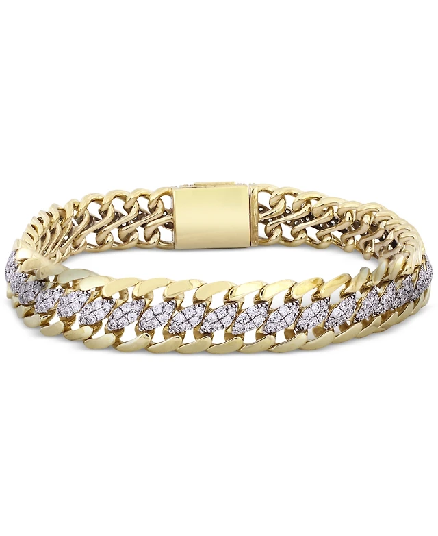 Men's Diamond Pave Cluster Square Link Bracelet (2 ct. t.w.) in 14k Gold-Plated Sterling Silver