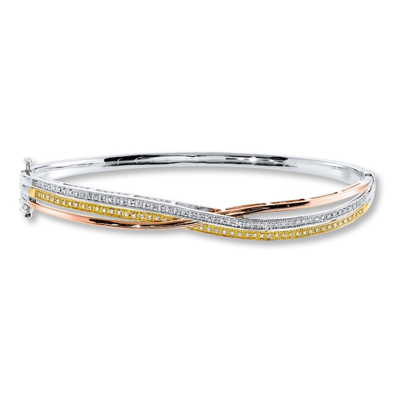 Diamond Leaf Bangle Cuff Bracelet 1/4 ct tw Sterling Silver & 10K Yellow Gold