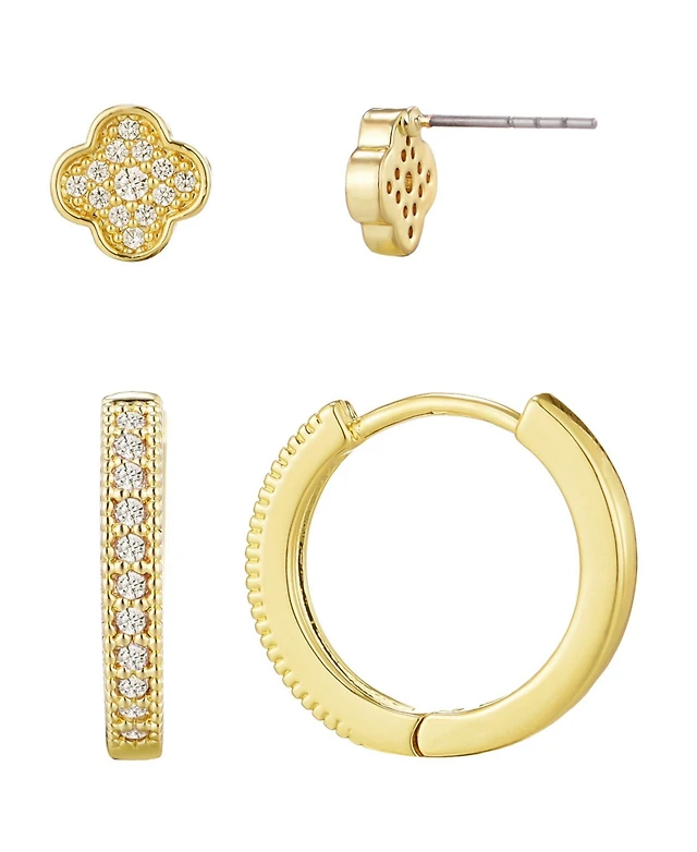 14k Yellow Gold Plated Hoop Earrings with Clear Cubic Zirconia