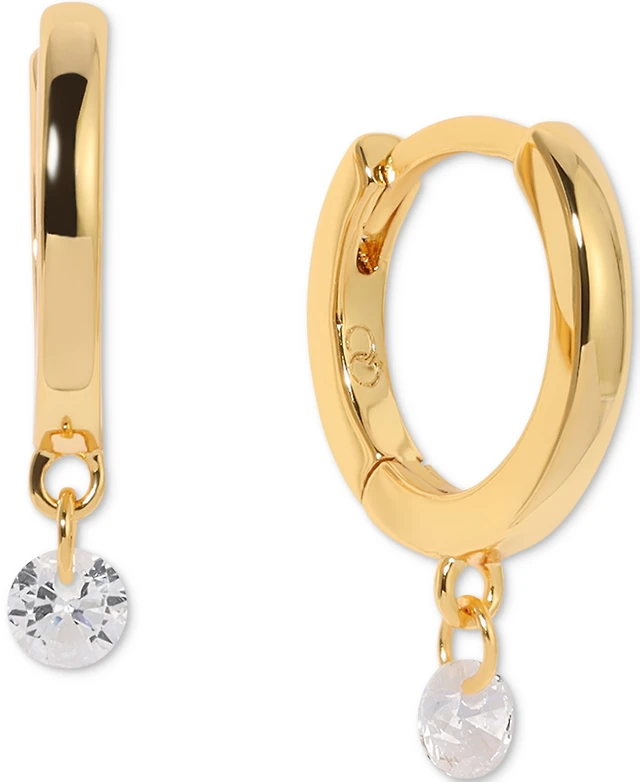 Modern 14K Gold Plated Cubic Zirconia Thin Statement Earrings