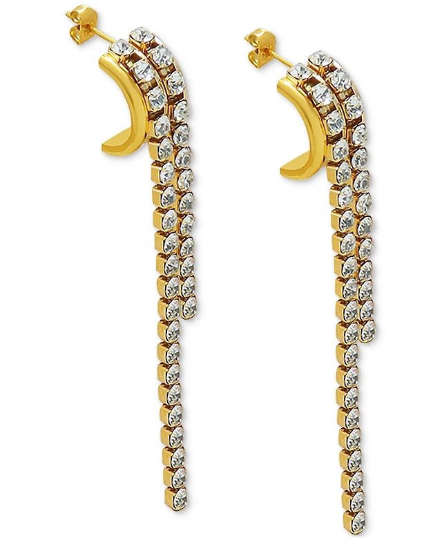 and Now This Criss Cross Clear Crystal C Hoop Earring, Gold Plate Silver