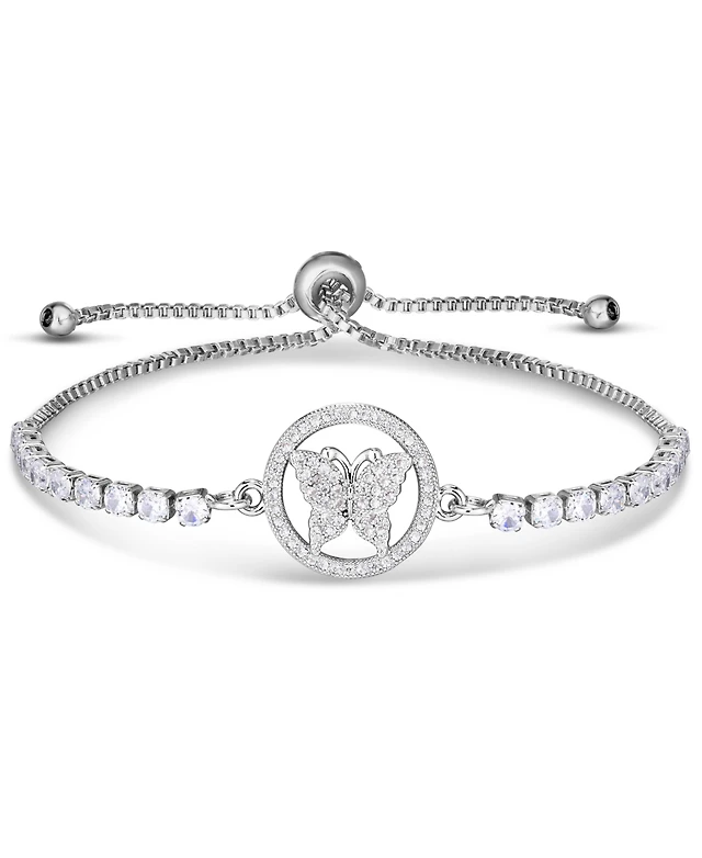 Sterling Silver or Gold Plated Over Cz Circle Paperclip Bracelet
