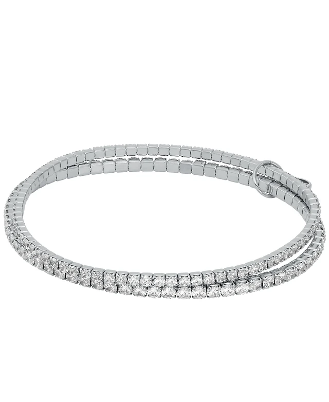 Diamond Accent Greek Key Adjustable Silver Plate Or Gold Plate Bracelet