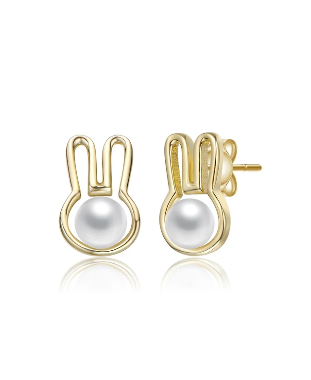 White Gold Plated with Round Pearl Modern Abstract Drop Earrings