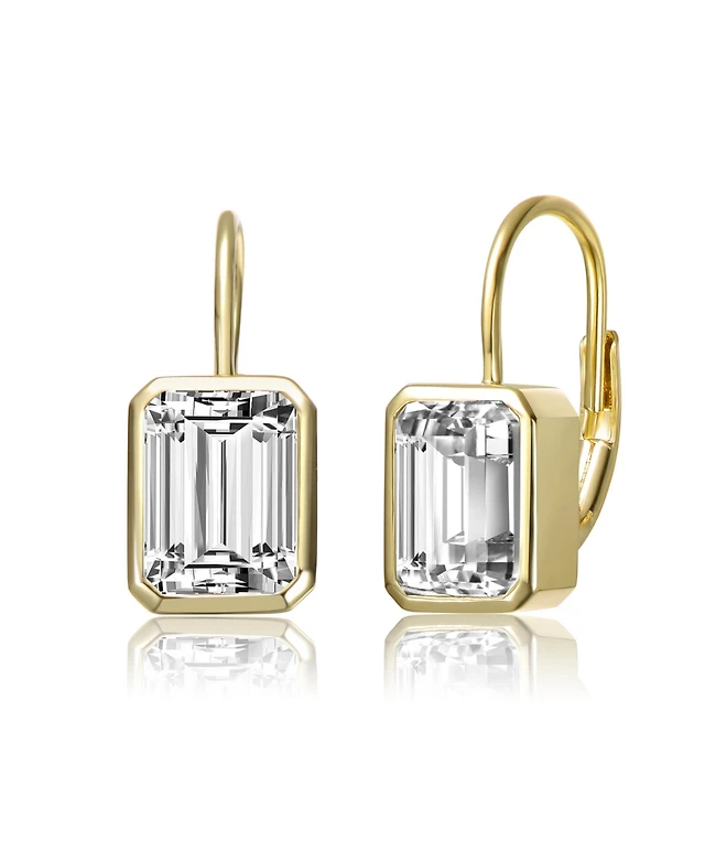 Sterling Silver Cubic Zirconia Baguette Drop Wire Back Earrings in White Gold Plated or 14k Gold Plated