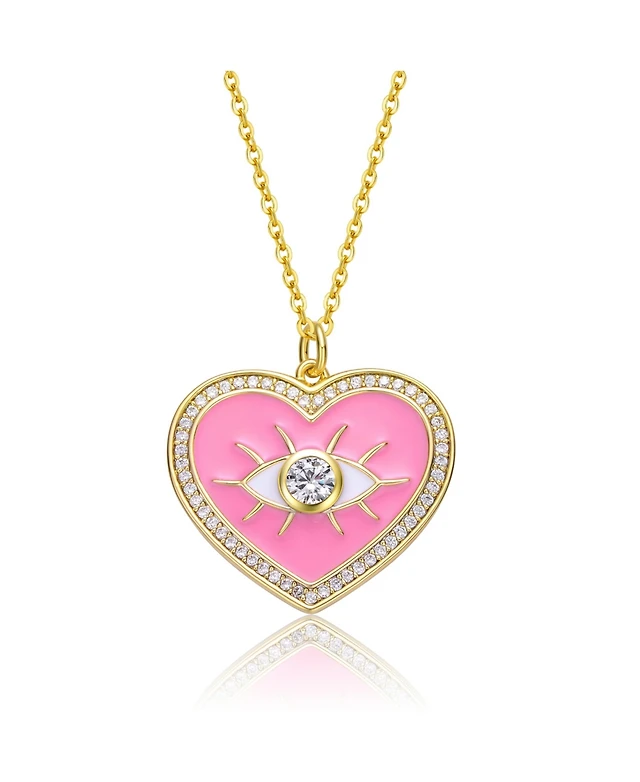 GiGiGirl 14K Gold Plated with White Mother Of Pearl or Purple Enamel & "Love" Inscription Heart Design Necklace