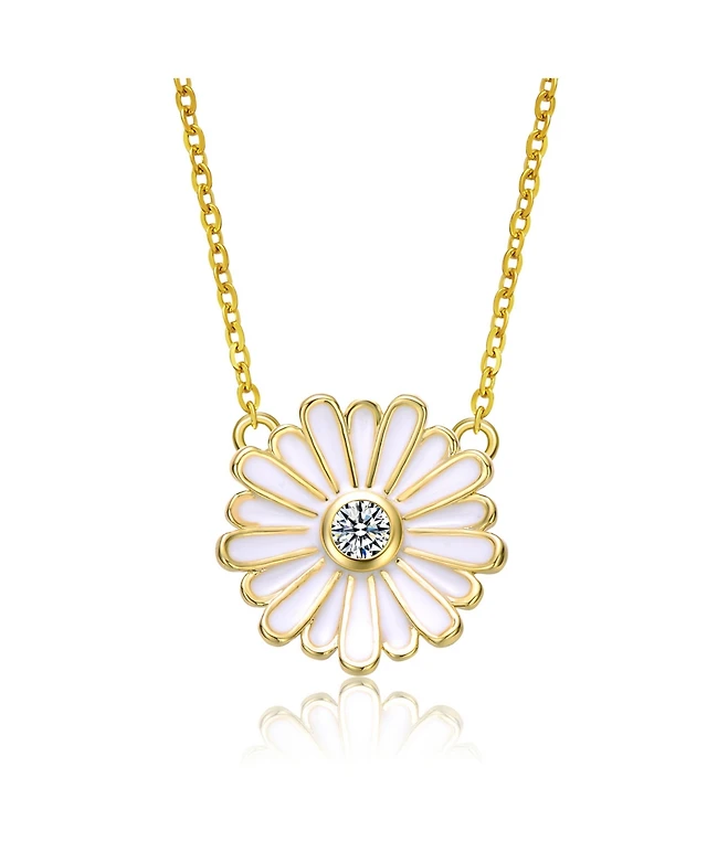 Genevive Sterling Silver White Gold Plated with Colored Cubic Zirconia Solitaire Thin Chain Necklace