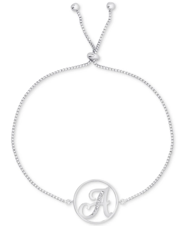 Diamond Accent Initial Bolo Bracelet in Silver-Plate