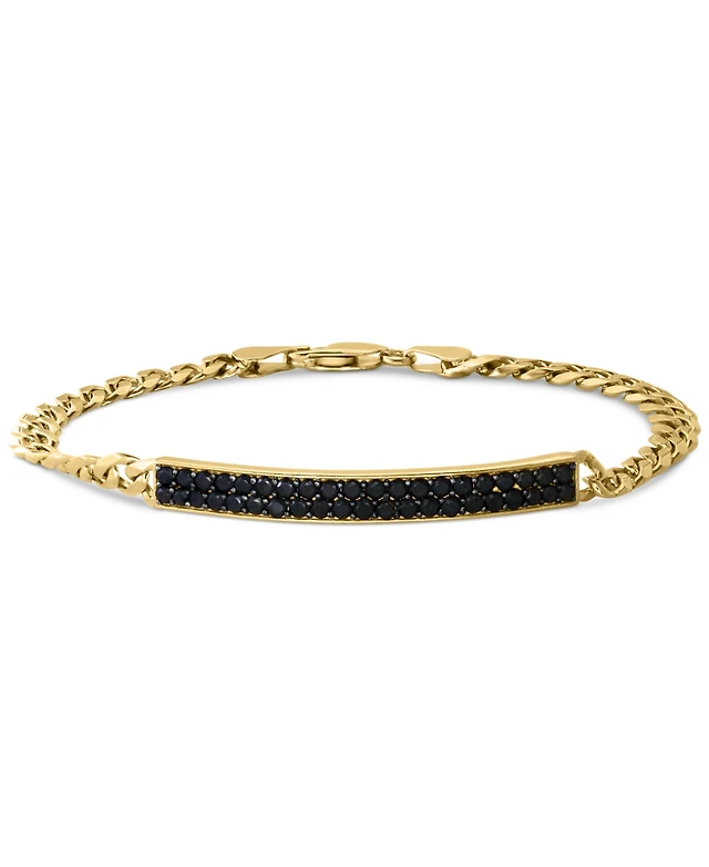 Sterling Silver 14k Yellow Gold Plated with Cubic Zirconia Chain Link Stiff Bangle Bracelet