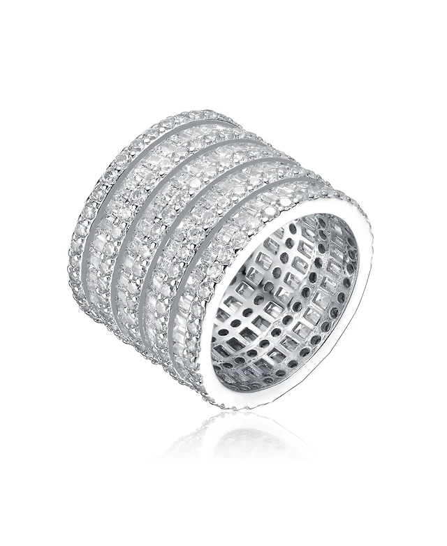 White Gold Plated with Cubic Zirconia 5-Row Stacked Column Glamor Ring Sterling Silver