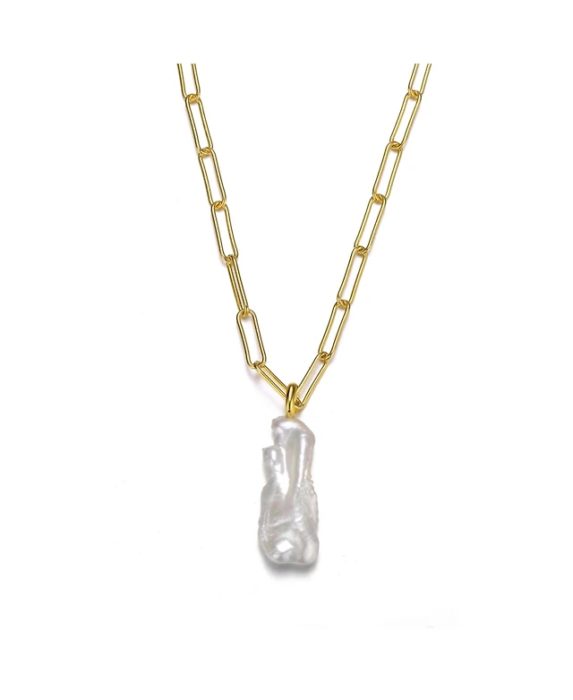 Sterling Silver 14K Gold Plated with White Egg Shapped Freshwater Pearl Y-Shapped Necklace