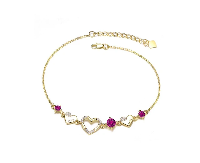 GiGiGirl Dazzling Cubic Zirconia Hearts Bracelet 14K Gold Plated