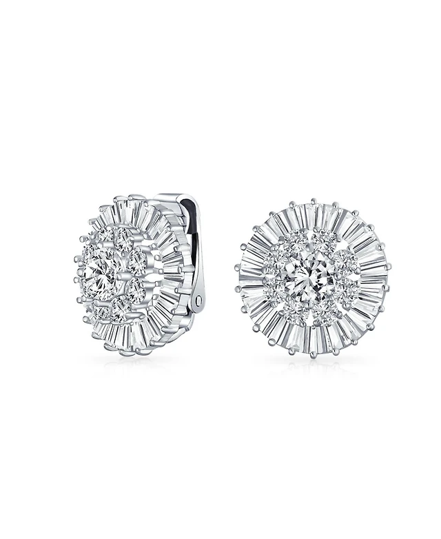 Bling Jewelry Set of 2 Multi Color Cz Clip-On Earrings Rose Gold Silver Plated For Non-Pierced