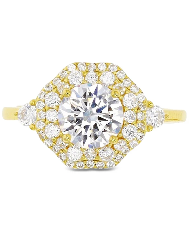 Rivka Friedman 18K Gold Plated Cubic Zirconia Halo Statement Ring