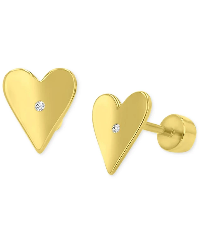 Pave Heart Stud Earrings in 14k Gold-Plated Sterling Silver