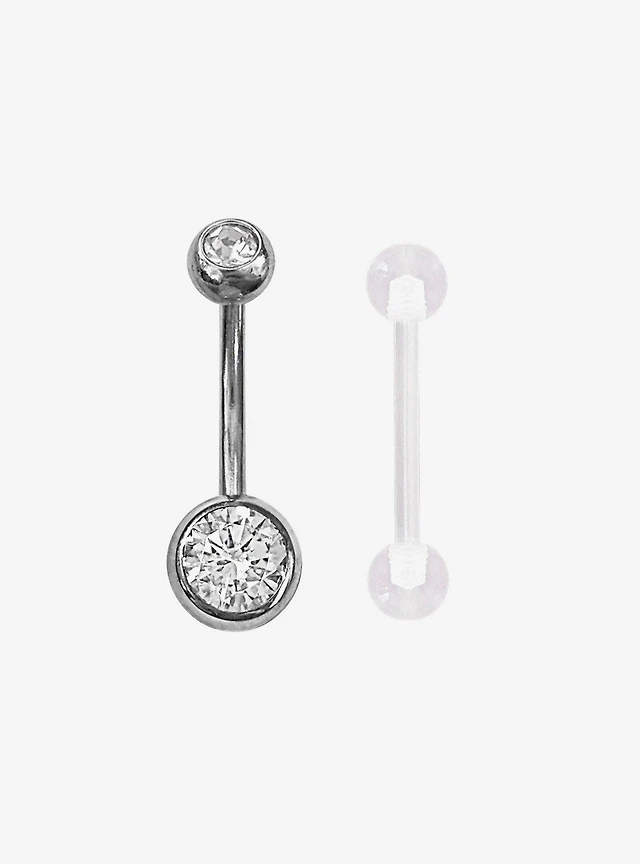 Steel Silver Gem Navel Barbell & Retainer 2 Pack