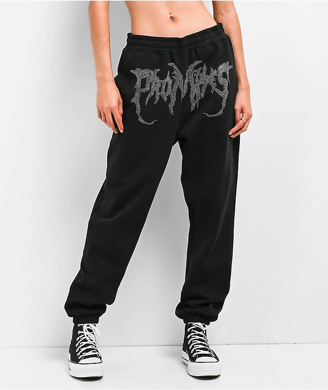 Broken Promises Ultrawire Rhinestone Black Wide Leg Sweatpants