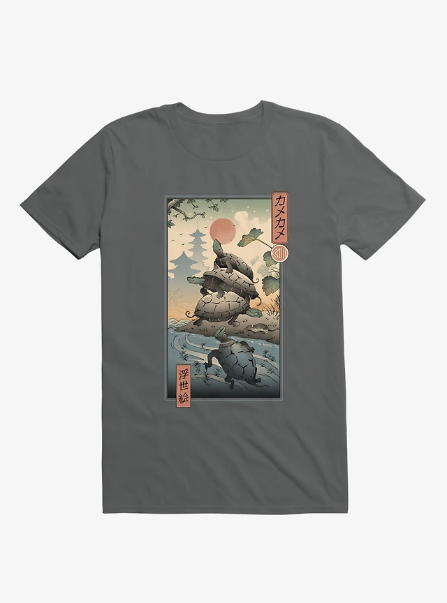 Turtle Stream Kame Kame Ukiyo-e Charcoal Grey T-Shirt