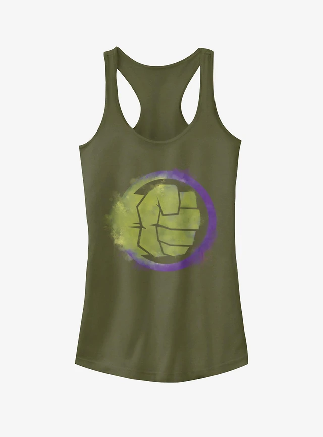 Marvel Avengers: Endgame Hulk Spray Logo Girls Military Green Tank Top