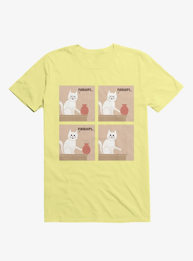 Purrhaps... Mischievous Cat Corn Silk Yellow T-Shirt