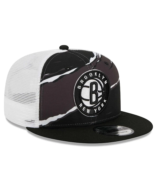 New Era Men's White/Black Brooklyn Nets Court Sport Foam A-Frame 9FORTY Adjustable Trucker Hat