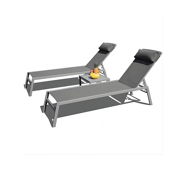 2 Pcs Patio Lounge Chair Chaise Recliner Back Adjustable Garden