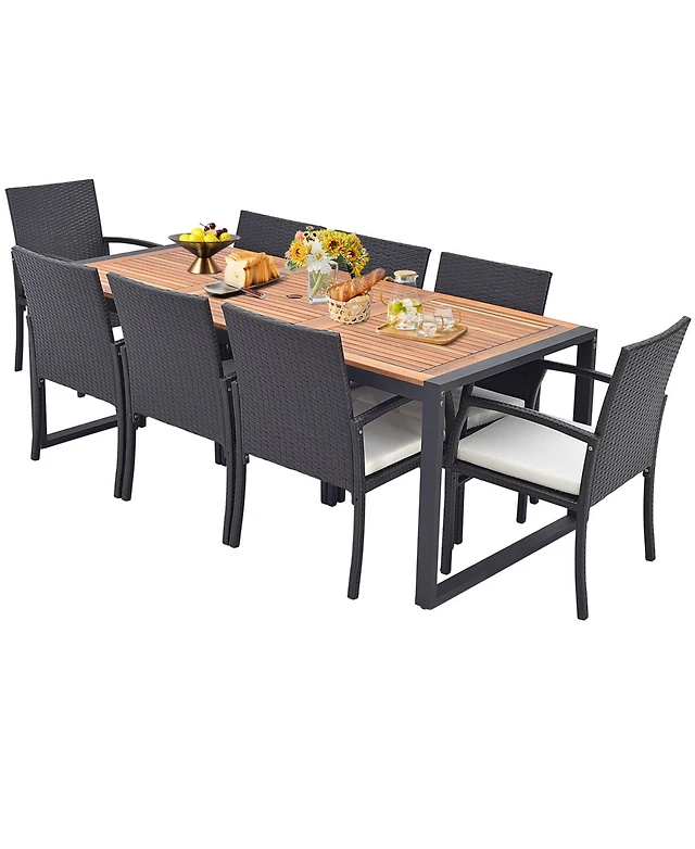 Gymax 9PC Rattan Wicker Patio Dining Set Outdoor Furniture Set w/ Cushion