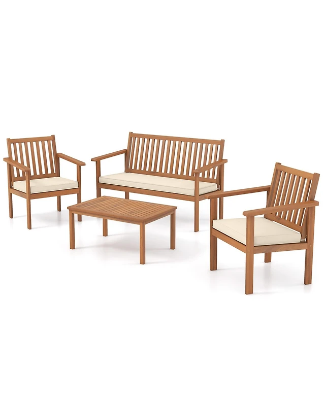 Gouun 4 Piece Patio Wood Furniture Set Acacia Wood Sofa Set with Loveseat-Off