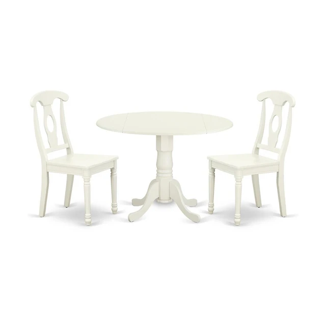 East West Furniture dining set of 4 great kitchen chairs with Linen Fabric Baby Blue color and a stunning drop leaf antique wooden dining table with L