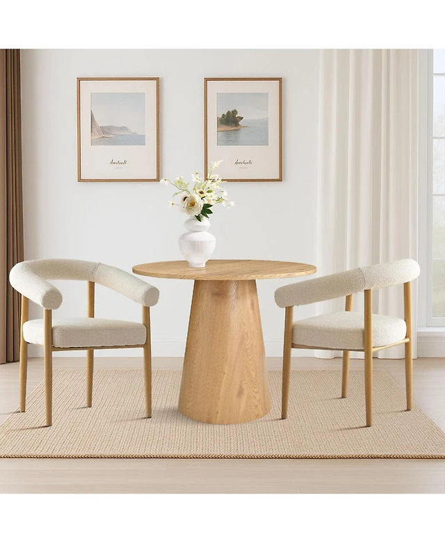 3-Piece Mid-Century Modern Dining Set, 39.4" Round Table and 2 Upholstered Chairs, Oak Finish, for Kitchen or Small Apartment-Maison Boucle