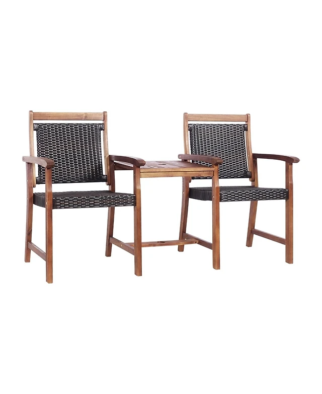 Outdoor Gliding Loveseat Chair with Tempered Glass Coffee Table