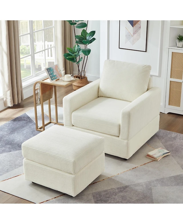 Glitzhome 2-Pc. Leatherette Mid-century Modern Hunter Accent Stool and Chair