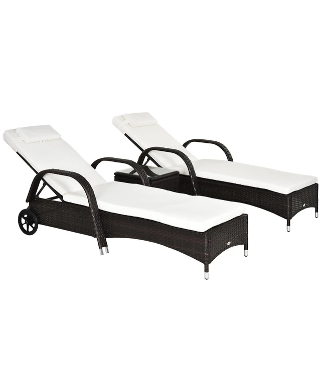 Outsunny 3 Piece Outdoor Furniture Set, 2 Reclining Chaise Lounge Chairs, Rolling Wheels, Armrests, Headrests, Thickly Cushioned, 1 Side Table, Pe Pla