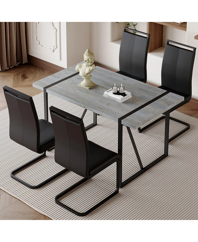 Streamdale Grey Marble Dining Table and 4 Pu Chairs