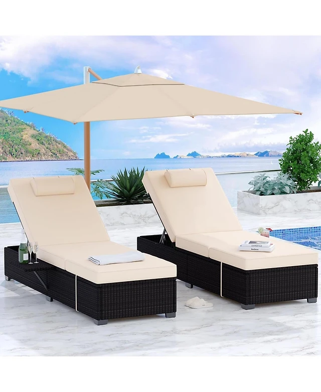 gaomon Outdoor Brown Wicker Patio Chaise Lounge Chairs Set of 2, Adjustable Backrest Lounger with Beige Cushion for Pool & Outdoor Use